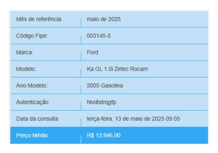 LOTE ÚNICO - LEILÃO: FORD/KA GL, PLACA DRE7087
